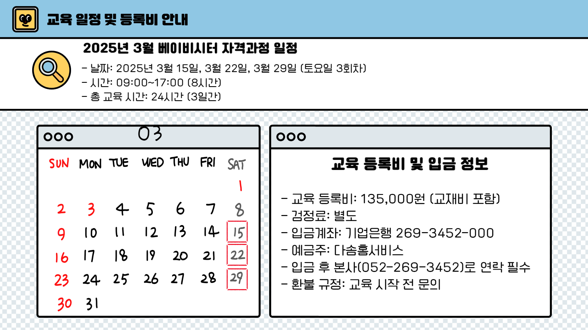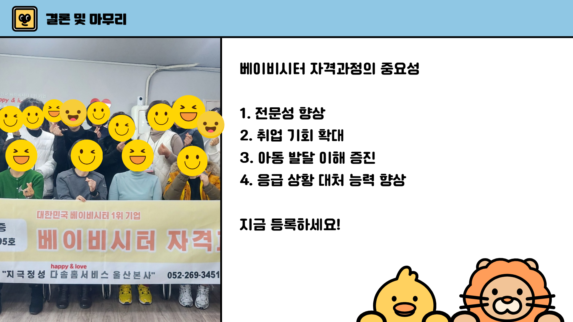 [2025년 50기] 베이비시터 자격과정 교육생 모집!